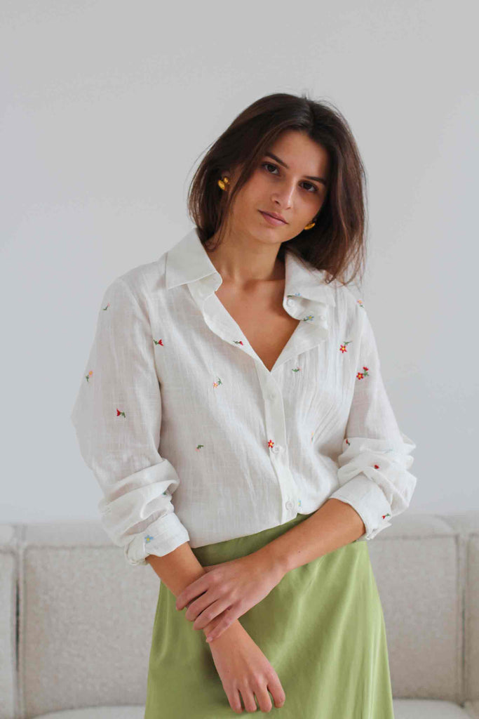 Camisa flores bordadas