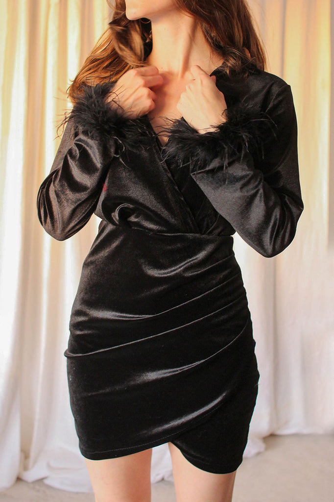 Vestido plumas negro