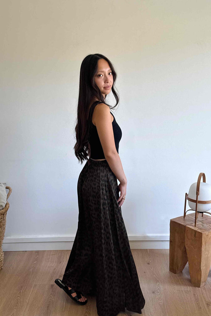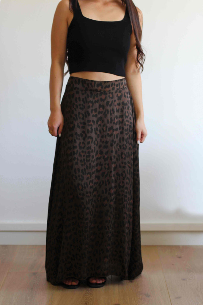 Una versión más sobria del clásico animal print: esta falda larga marrón con estampado animal oscuro es ideal para un look versátil. Confeccionada en un tejido fluido de tacto suave, su caída favorecedora y movimiento natural la convierten en una pieza imprescindible para tu armario de temporada. El estampado, en tonos tierra y negro, ofrece una interpretación más discreta del leopardo tradicional, lo que la hace perfecta tanto para looks de día como para estilismos de noche. Combínala con tops negros, camisas blancas o incluso un blazer oversize para un outfit más urbano. Atemporal, femenina y cómoda. Características clave: Falda larga con estampado animal en tonos marrón oscuro y negro Goma elástica en la espalda de la cintura La modelo mide 1,56 cm Tejido ligero con caída suave y movimiento fluido Cintura confortable y adaptable Estilo versátil: perfecta para looks casual o elegantes Estampado sutil para quienes prefieren un animal print más discreto