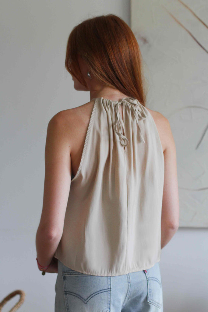 Top halter beige cruzado