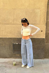 Pantalón de algodón con corte recto. Cierre de cintura frontal con cremallera, botón y un cordón ajustable por dentro de las trabillas. Tiene dos bolsillos laterales, otros dos traseros y es de tiro medio.