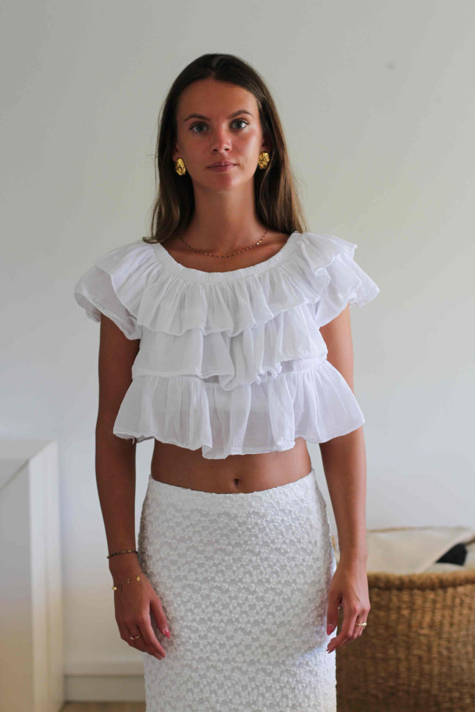 Top blanco corto con volantes